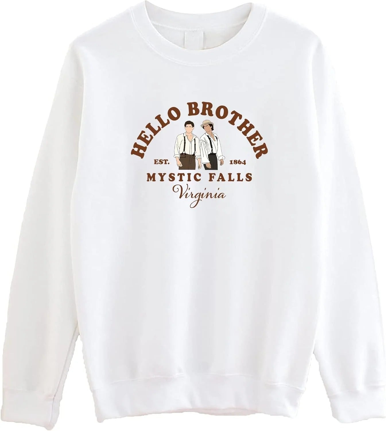 • Stay cozy with the Hello Brother Mystic Falls Virginia Sweatshirt. Crafted for comfort and casual style, this sweatshirt features a relaxed fit perfect for everyday wear. Its soft fabric keeps you warm while showcasing a subtle nod to Mystic Falls, making it an ideal choice for fans and anyone who loves a laid-back vibe. Easy to pair with jeans or joggers, it’s your go-to for effortless cool and warmth.